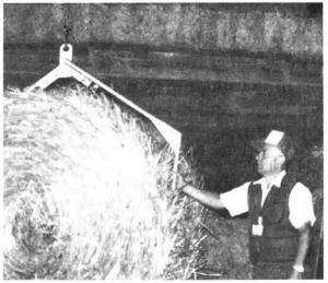 Radio-Controlled Hay Lift Retrieves Round Bales CROP STORAGE Handling Equipment 14-1-11 "It takes the work out of handling round bales," says James Rohr, North Lawrence, Ohio, who uses a radio transmitter similar to the ones used on ordinary garage door openers to build a radioùcontrolled round bale "hay lift" inside his barn.