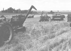 Included in his collection is a 1955 Massy-Harris pull-type, a Case No. 50, a Massy-Harris Clipper, a 1950 Allis Chalmers 50, an Oliver 18, and a 1942 IHC with a 4-ft. header.