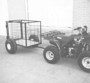 The 3-ft. wide, 4-ft. long, 3 1/2-ft. high trailer rides on flotation wheels and has a wooden floor. The sides are made from panel wire welded to a steel frame. The calf enters through a hinged gate on back.