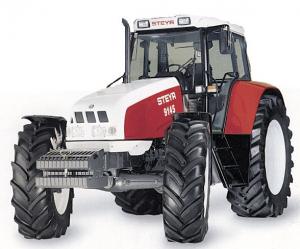 Steyr tractors range from 48 to 150 hp and offer a unique front axle with single-wheel spring suspension system. It absorbs all bumps and bounces in fields and on roads, offers better steering and braking, and maintains the machine's stability at high speeds, according to the company. The suspension can be locked when precise control is required, such as when running a front-mount cultivator, and ground clearance can also be adjusted.