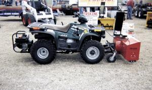 "The rear-mount engine on our new ATV-mounted snowblower helps balance the snowblower's weight, making the ATV easy to steer at all times," says Michael Gustafson, Erskine Mfg., Erskine, Minn. The new-style snowblower was introduced at the recent Big Iron Show in Fargo, N. Dak.