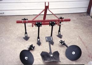 A collection of garden implements that fit universal toolbar. Includes cultivator shovels, row builders, middle busters. Sells for $465.