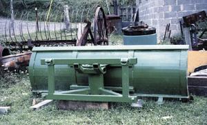 I made a front blade for my 5400 Deere tractor. I had a piece of 3/16-in. flat steel that measured 7 to 8 ft. long and 20 in. wide. To reinforce it, I welded a 2 by 3-in. piece of channel iron to the top and bottom of the curve. I put a Caterpillar cutting edge on bottom and put runners on back for snow removal. I used 8 by 14-in. long square tubing for the pivot to angle the grade, with a 7/8-in. pin to hold the blade in place. John Deere quick couplers install on the 520 Deere loader to level the blade and we use the bucket tilt cylinder. It takes less than a minute to mount the blade.