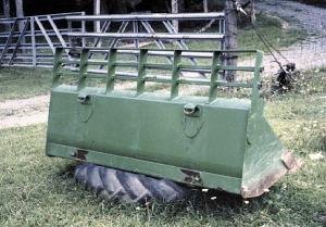 Another idea I had was to put safety bars on the back of my loader bucket and pallet forks. I made them with heavy bar steel. Stops tip-backs, protecting the operator and the tractor. (John Faulkner, Rt. 1, Box 1338, Pounding Mill, Va. 24637)