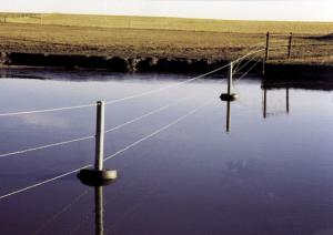 Foot says the posts can be spaced out across a wet area like a slough or even across a lagoon or dugout, and barbed wire can be stapled to the posts.