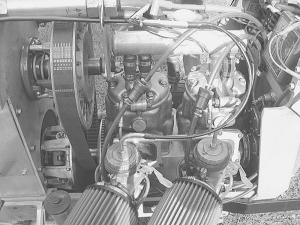 A closer look at Hasbrouck's little tractor reveals individual brakes on the rear wheels, but not much else - until you look under the hood. There, in the same amount of space occupied by the original 10 hp single-cylinder 4-cycle engine, sits a custom built 2-cylinder, 2-cycle powerhouse that turns out just under 200 hp.