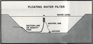 Floating Water Filter FARM HOME Miscellaneous 26-3-35 We've been selling this floating water filter for years in our local area and would like others to know about it. It's designed to draw water from a lake or pond. The intake is just below the surface where it can draw water of a higher quality.