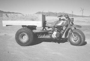 "Mine was a typical 3-wheeler - parked in the corner of my barn collecting dust," says Jeff Hoard, Austin, Nevada, who finally decided to extend the frame and mount a dump bed on it. "Now I use it every day."
