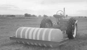 "It works well and cost very little to build," says Grafke. "It turns easily and follows the tractor so well I can roll along in fourth gear. I chose this type of propane tank because it had flat stubby ends which made it more compact than a tank with hemispherical ends. I fill the tank as full as I can get it, which gives me about 4,500 lbs. water weight and another approximately 800 lbs. for the tank and frame. When building the roller, I removed all the fittings from the tank and welded them shut, then installed a fitting on the outside perimeter of the tank so it can be filled almost completely full of water."