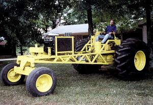 I built this home-made tractor out of old combine parts. It's designed to look like a pull tractor or hotrod. I've never used it on the farm but I drive it in 4th of July parades. It's got a 351 Windsor motor and the front and back ends are made out of parts of a TR 70 New Holland Combine. I want to sell just the chassis for $2,000. (Sam Crowder, P.O. Box 234, Lattimore, N.C. 28089 ph 704 692-2240)