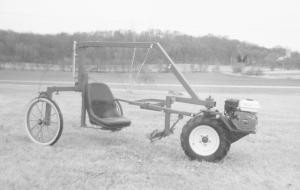 He also designed a lot of adjustable features into the rig. For example, the rear wheels adjust from 32 to 40 in. rows. "The frame that goes over the rider can be slid all the way to the left or right so that the front and rear wheel follow the same track, with the other rear wheel on the other side of the row," says Gurgle.
