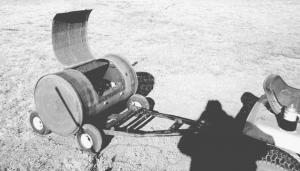 Once the barrel was complete, Golden wanted a way to easily turn it. An H-shaped workbench end support made from 1 by 2-in. steel tubing provided a frame for his barrel cart. All Golden had to do was attach lawn mower wheels and a hitch.