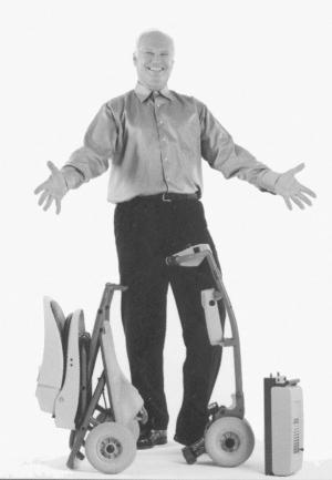 "It eliminates many of the hassles of a conventional scooter because you can easily take it with you wherever you go," says Maneth. "It disassembles in three parts, allowing you to store it in any car, RV or boat. The rig can also be folded up into one piece like a suitcase on wheels, allowing you to check it in with any airline."