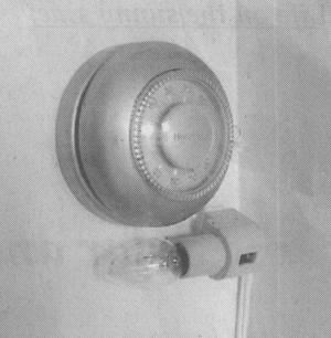 Pesha turns on the nightlight and sets the timer for about a half hour before he rises. This tricks the thermometer into believing the house is warmer than it is and not turn on. The timer turns off the lamp just before Pesha gets up which lets the thermostat cool enough so that the heater turns on before he gets up in the morning. He enjoys waking up to a warm house as well as the energy savings.