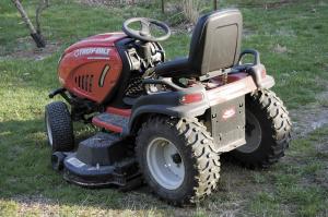 "ATV's have so many more options in tires than lawn mowers. You can get anything from nearly flat tread up to tractor-type tread. Plus you can get a 4 or 6-ply ATV tire for about the same as a 2-ply lawn mower tire," says Mike. "I put knobby pattern tires on the front of my dad's mower and went from 24 to 25-in. tires on back. Now he can turn and climb where he couldn't with mower tires and the extra inch of height reduced scalping."
