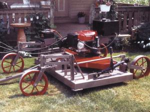 The tow-behind mower is powered by a 24-hp. Honda engine that's powerful enough to provide a smooth cut under the toughest conditions, working it's way through cow patties and gopher mounds without plugging up, says builder John Fisher, General Repair Shop, Ronks, Penn.