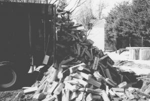 "The truck holds six cords of wood. I also put headboards on several smaller trucks that can back into a conventional car garage," says Weeks. "I could hit the button and drop the wood in place."