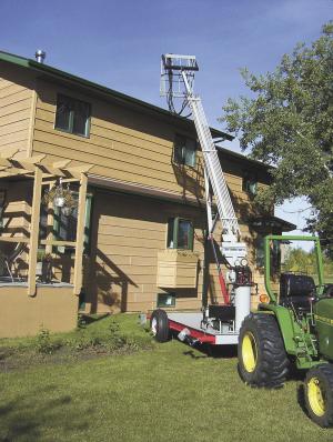"I used it a lot last summer to paint my 2-story house and to work on the house's eaves troughs. Once I built it, I found it's useful for doing an amazing number of different jobs," says Verbeek. "The 21-ft. lift height is enough that I can step out of the basket directly onto my house's roof. It works great for replacing windows, changing yard lights, trimming tree branches, and so forth.