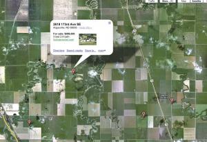 Look up a town at Google Maps (www.maps.google.com) and then switch to "Satellite View". Click on the menu heading "More" and select "Real Estate". This will cause red markers to appear on the overhead view you're looking at. Each one of the markers is a property-for-sale listing. As you move your cursor over each mark, a window pops up with a brief bit of information - address, price, size of property. If you click on the link in the window, it'll take you to the complete property listing with all details and who-to-contact information.
