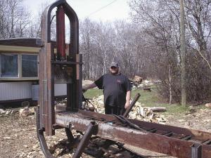 "I go through 20 cords of firewood a winter and decided to find a way to make the job easier," says Inkster. "My wife uses a Bobcat to load logs onto the feeder chain, and I run the shears."