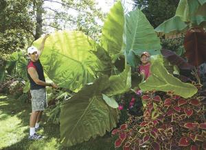 With just one plant, you can create a mini “jungle” in your garden or backyard. Up to 9 ft. tall with leaves as wide as 5 ft., Thailand Giant Elephant Ear plants can be found in many catalogs, on websites and in nurseries. Hardy in Zones 8 to 10, they survive over winter in the warmest regions, but ambitious gardeners in colder climates can dig the plant’s tubers in the fall to plant again the following spring. Some growers plant them in pots so they can bring the whole thing inside during the winter.