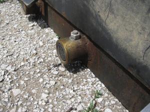 Each bushing extends out the back side of the attachment plate. To mount the 3 bale spears he bought, Schweppe pushes the spears through the bushing and out the back, then inserts a 1/2-in. bolt through the holes already in each bushing.