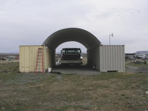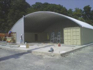 Builder Incorporates Shipping Containers Into Its Designs BUILDINGS Miscellaneous Used shipping containers can be used as walls offices or interior storage rooms with custom designs from SteelMaster a builder of curved steel structures While lots of FARM SHOW readers have found novel uses for steel containers SteelMaster’s turnkey roofing systems make conversion easier than ever Options are nearly unlimited depending on the number of containers used “Our first customer had two containers on each side that he wanted to use for offices with an enclosed secure work space in between ” says Michelle Wickum SteelMaster “Since then we’ve come up with lots of different ways to use shipping containers ” SteelMaster treats each job as a custom design due to different snow and wind loads in different areas Gary Parker a designer with SteelMaster says that while costs start at $1/sq ft those variables and the size of the area to be covered will affect pricing “Our biggest job so far was double stacked containers that were 30 ft tall The area to be covered was 60 ft wide ” says Parker “We can do spans of up to 150 ft in ideal conditions ” Parker says the cover edges can be attached directly to a container with lag bolts or welded to an I-beam attached to the container Cover edges can be attached to either the inside or outside edges of a container wall Front and rear wall areas are also available from SteelMaster to match the covers The covers are maintenance-free and come with complete blueprint assembly plans The container covers like other SteelMaster buildings are assembled on site with individual panels light enough to lift and place by hand “The buildings are considered temporary or portable ” notes Wickum “They can be dismantled and moved as easily as they were installed ” “In most areas this also means they are property tax free ” adds Parker Contact: FARM SHOW Followup SteelMaster Buildings
