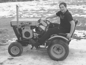 Last summer he had some money he earned working at a dairy farm. His first stop was a scrapyard with more than 3,000 old lawn mowers. Young made a deal with the owner to trade a rototiller he’d fixed up for a Gilson C-14 Ford made in the late 1950’s.