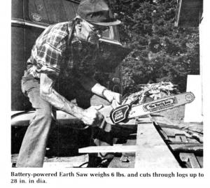 Just clip the saw's power leads to a 12-volt battery, pull the trigger and make your cut. The Earth Saw is quieter than conventional fuel-powered saws, and will never give you any starting problems, even after months of storage, says Smith.