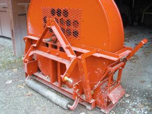 He bought the silage blower from a neighbor for $25. He cut off the tongue, wheels and the blower’s conveyor/auger, and fitted it with a 3-pt. hookup.