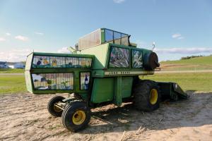 “Part of the stipulation for taking part as an artist at the festival was that the art be placed in a farm field,” recalls Unnasch. “I thought a combine was the best 3-D object I could think of.”
