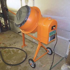 Korner bought the 3 1/2 cu. ft. concrete mixer powered by a 1/3 hp electric motor at Harbor Freight for $200. He uses big hose clamps to fasten 1/16-in. thick rubber roofing material over the lip of the mixer’s 18-in. dia. opening, forming a seal that keeps the corrosive lye from splashing out. Once all the hair has been removed from the hide, he uses a salt solution in the mixer to flush all the lye out of the hide.