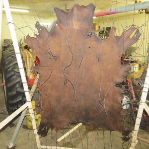 He used three 8-ft. metal furring strips to build a drying frame for the tanned hide. The hide is secured to the frame with waterproof poly cords that loop through holes punched in near the hide’s edges.