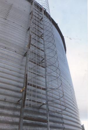 “When I reached my 70’s, I no longer wanted to climb the bin to open the roof door for the elevator. It didn’t feel safe any more,” says Mauler. “The steps were 22 in. apart, and the ladder had no backing. So I added rungs to the ladder half way between the existing rungs, and also added a metal cage - made from a 16-ft. cattle panel - around the ladder to rest my back against. I spent almost nothing to build it.”