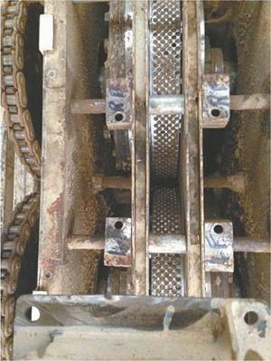 “The conveyors and paddles would freeze up and the paddles were not heavy enough. The auger that supplies material to the dies had to be replaced with one of our own design so we could use steam to preheat the crop material. Sensors were installed to control the flow of material yet allow the dies and hammermill to run continuously. The two dies run against each other with 3,000th of an inch clearance and were extremely difficult to reset, so we redesigned them with a cam that can be adjusted with a large ratchet. In addition, the dies have thermal elements imbedded into the wall of the plate that the dies are fastened to. We doubled the wattage and saw a significant increase in production but, more importantly, saw fewer problems with variability in moisture content of incoming product to the dies.”