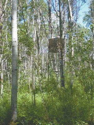 Sidney Stubbs is all set for fall hunting season thanks to his tote cage deer stand. With 5 of the 46-in. high, 40 by 48-in. cages stacked, Stubbs is up high, out of the deer and elk’s line of sight.