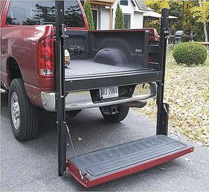 According to the company, the tailgate lift can easily lift loads up to 1,000 lbs., which makes it ideal for moving generators, motorcycles, golf carts, riding mowers, appliances, etc. Also, with the bed floor extension you have an additional 10 in. of storage space.