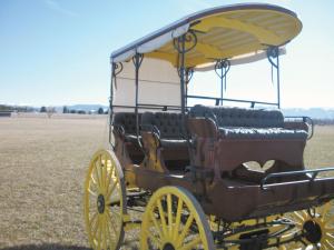He built two delivery wagons, one for light town delivery and the other for heavy town delivery. His Yellowstone Park Tour Mud Wagon was used during the park’s early tourism years.