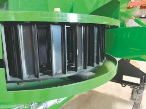 The 2 impact mills spin in opposite directions, discharging material in the middle of the assembly and blasting it into the straw stream. This ensures the devitalized seeds, chaff and dust are well distributed in the field and away from the combine, reducing air filter maintenance and the risk of fire.