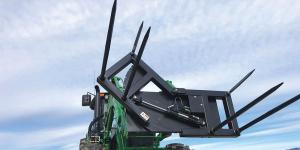 “With most double bale carriers, you pick up a bale, set it next to another bale, back up and then drive forward to spear the two bales,” says Larson. “You often end up rubbing them together and sliding them on the ground.”