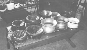 "I've never really studied the history of them so I can't say what the most valuable one is or the most unusual," says E.J. Halpenny, 88, Ottawa, Ontario, who started collecting "spittoons" five or six years ago and now has 12 in his collection. "They're all probably about 75 years old and many may have come from hotels in Quebec, where ęchawing' was a real popular pastime."