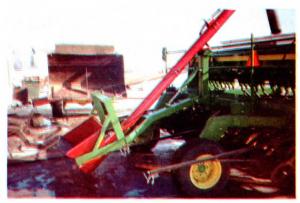 Mounting brackets fit Deere, Case-IH, Tye, Great Plains and Krause drills. Can be fitted with either a bristle auger or belt conveyor.