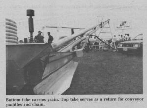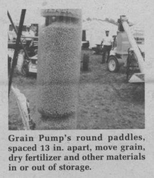 Fassler notes that the Grain Pump is a scaled-down version of Hutchinson's Master Mover which uses square paddles and has a higher (5,000 or more bu./hr.) capacity. "Our new Grain Pump uses the same concept, except that it has round instead of square paddles and is rated at 1,500 to 2,000 bu./hr. capacity for a 6 in. dia. system. We'll soon be introducing an 8 in. dia. Grain Pump," Fassler told FARM SHOW.