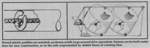 The revolutionary Grain Pump uses round paddles, spaced 13 in. apart on a continuous roller chain, to move grain in or out of storage.