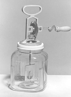 • This hand-cranked glass butter churn is based on an old design, but uses modern technologies and materials. From Lehman's, the churn features a stainless steel dasher turning in nylon bushings. Gears are made from Delrin, a nylon-like product.