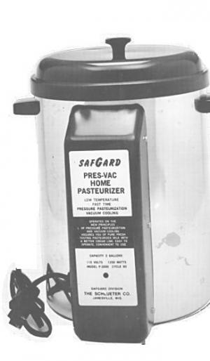 • You can pasteurize 2-gal. milk bottles in this mini pasteurizer that can also be used to heat treat colostrum. Heat-treats colostrum at a constant temperature of 135? F; pasteurized milk reaches 160?, then shuts off automatically. Sells for $262.50, plus $7.50 S&H.