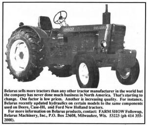For more information on Belarus products, contact: FARM SHOW Followup, Belarus Machinery, Inc., P.O. Box 23608, Milwaukee, Wis. 53223 (ph 414 355-2000).