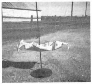 Seed Sack Spear CROPS New Techniques 13-5-35 My seed sack spear is simple but it sure beats chasing sacks around the yard. It consists simply of a 1/2-in. pipe with an old pointed punch on the top end and a metal flat plate welded to the bottom. When I empty sacks I just poke them over the top of the punch. I also burn them while they're still on the stake. (Rick Mabeus, Rt. 2, Box 62, Winfield, Iowa 52659)
