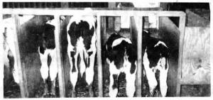 "I've experimented with different types of calf stalls for 40 years and these stalls are the best yet," says Flinchum. "I've used them for three years without losing a calf. I wanted a way to raise calves so they'd get plenty of exercise and be easy to feed. Hutches are expensive and re-quire a lot of time for feeding and caring because you have to walk from hutch to hutch. These stalls are all located in one place so I can feed 16 calves in only 15 min. There's room for only one calf per stall so big calves can't crowd out the little ones and all calves get equal amounts of feed. Calves stay healthier than they do inside hutches because they get plenty of exercise in a 2-acre lot outside the shed, and because they can group together and stay warm in the sunshine that comes through the clear plastic south wall. I bottle-feed milk replacer for two months before weaning and provide dry feed when calves are 2 to 3 days old. I continue to feed them until they reach 400 lbs."