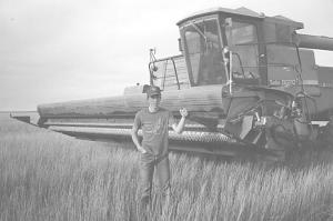 I couldn't justify the $1,000-per- foot price that a commercial unit would have cost so I built my own stripper header two years ago out of a 24-ft. quick-tach Deere plat-form head," says Joe Kinnie, Julesburg, Colorado, who runs his header on a 1984 Deere 8820.